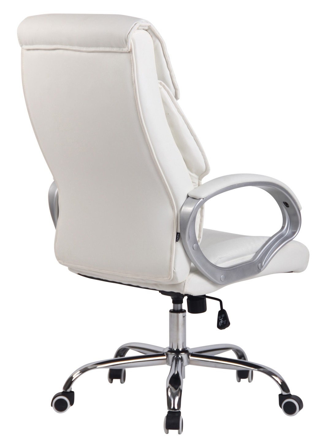 Le fauteuil de direction Torro est une chaise de bureau de très haute qualité avec un rembourrage de très haute qualité et un revêtement en simili cuir. Les housses en cuir synthétique ont l'avantage d'être élastiques et de s'étirer facilement lorsque la charge est soulagée. Cela est non seulement plus joli, mais augmente également la durée de vie de la housse de siège. Les housses en similicuir sont également respirantes, ce qui constitue un avantage, surtout à des températures élevées. Le cadre est en métal d'aspect chromé et est très stable. La hauteur du siège est réglable en continu. La chaise dispose d'un mécanisme à bascule intégré pour une plus grande liberté de mouvement. La chaise de bureau est équipée de 5 roulettes très robustes et silencieuses. Qu'il s'agisse de sols durs ou de moquette, vous pourrez toujours rouler facilement et sans serrer sur le sol.