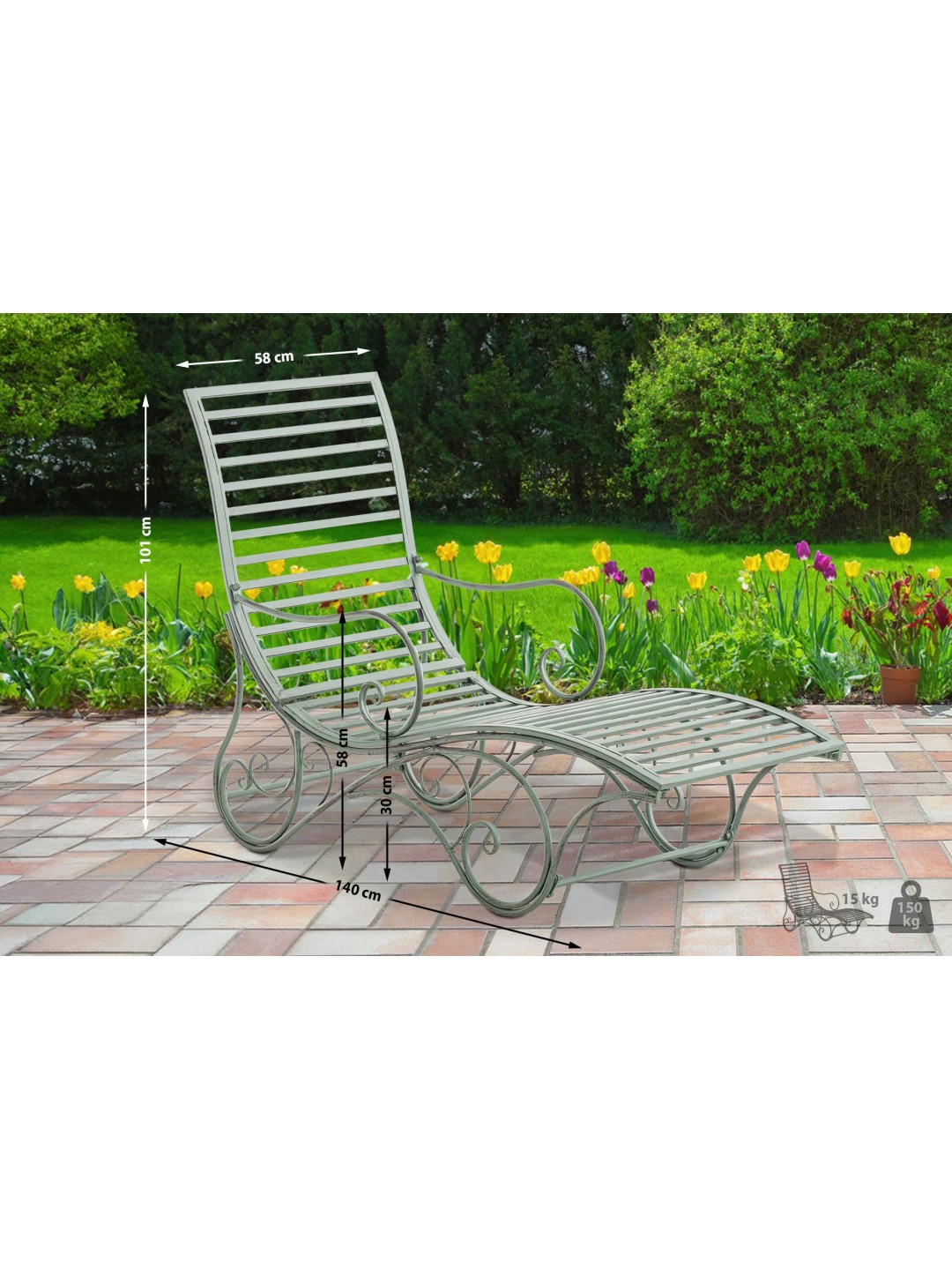 Avec une capacité de charge maximale de 150 kg, la chaise longue offre une stabilité suffisante pour des heures de détente en plein air. Que ce soit comme siège ou comme élément décoratif élégant.