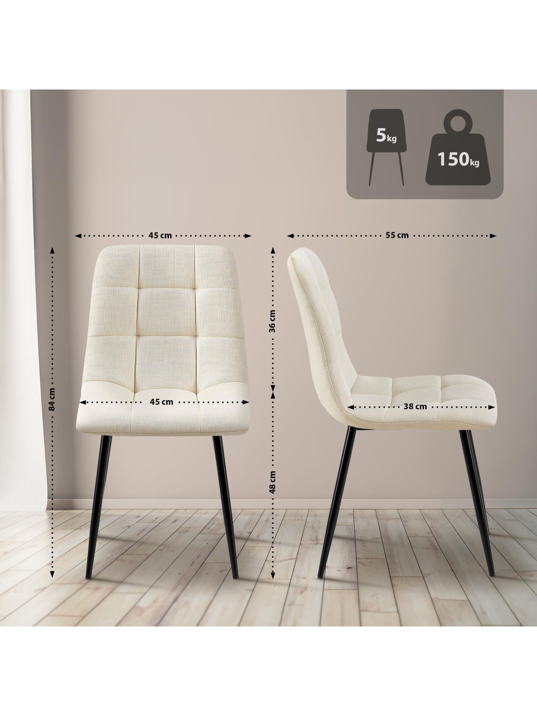 Cet ensemble composé de deux chaises de salle à manger Tilde allie un grand confort d'assise à un look moderne et intemporel. Ces chaises rembourrées sont un excellent choix pour votre table de salle à manger, votre cuisine, votre salon, mais aussi à d'autres fins.